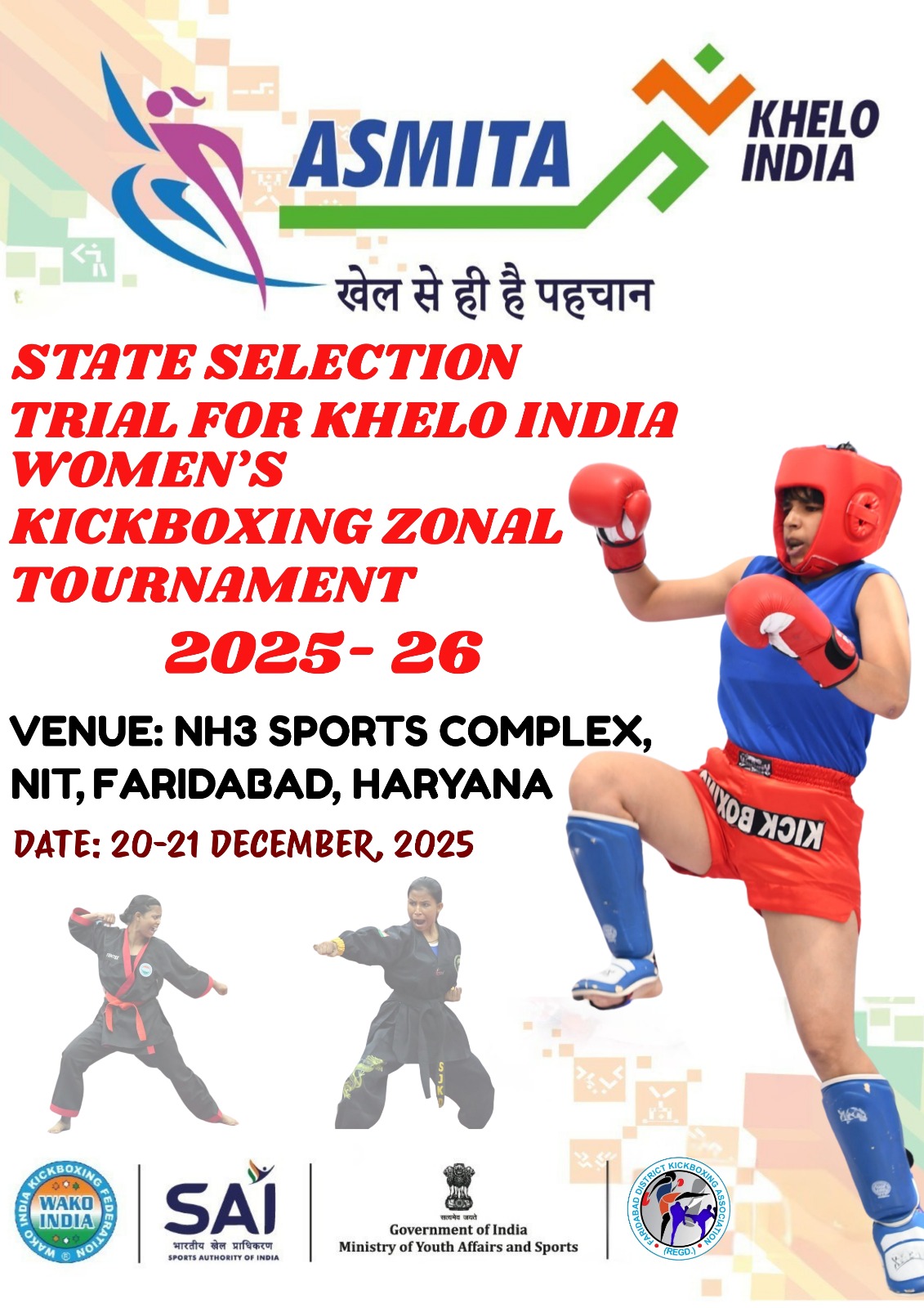 State Selection Trial For Khelo India Womens’ Kickboxing Zonal Tournament 2025-26